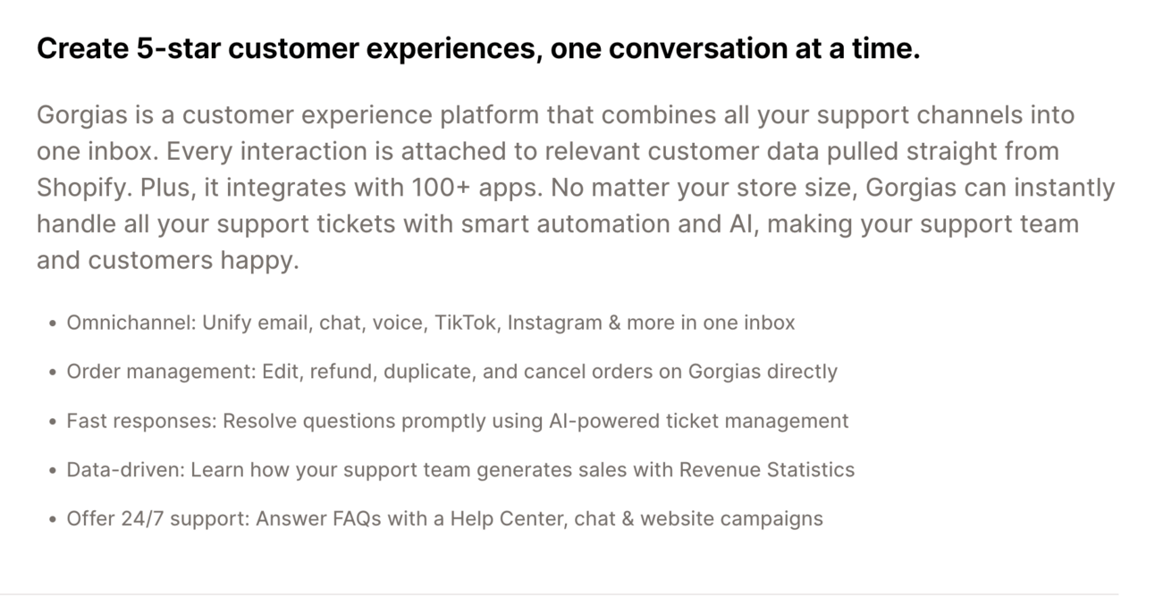 Gorgias App Listing Page
